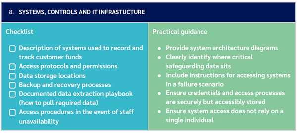 This is a core component of any firm’s safeguarding framework, and will be assessed on whether it enables a third party to reconstruct customer balances, validate safeguarding positions and execute fund returns without delay or reliance on internal knowledge.